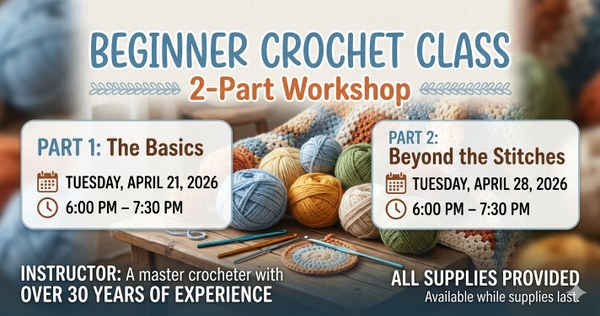 Unleash your creativity at our 2-Part Beginner Crochet Workshop!